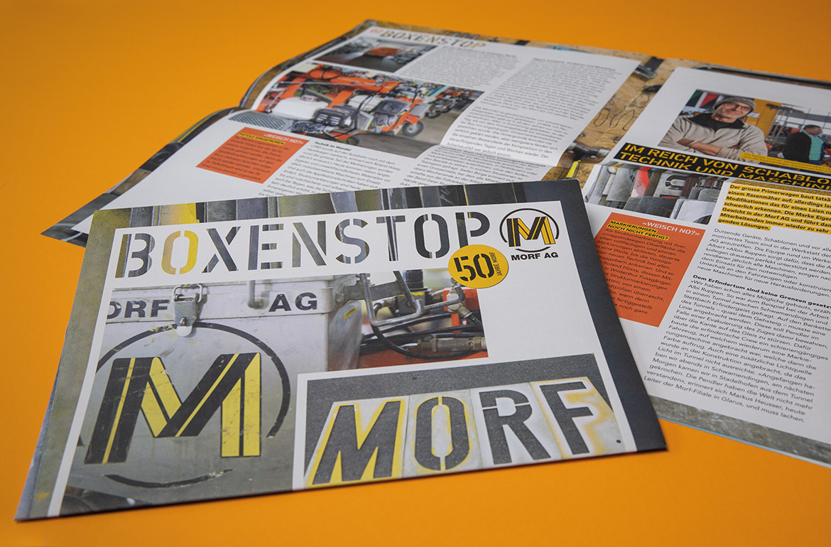 Zum Jubiläum haben wir die spannende Vergangenheit und vielseitige Arbeit des Unternehmens in der Zeitung «Boxenstop» gebührend in Szene gesetzt und die Verantwortlichen bei der Organisation der grossen Geburtstagsfeier unterstützt. An jenem Anlass wurde dann die Jubiläumszeitung stolz an rund 240 Kunden und Mitarbeitende überreicht.