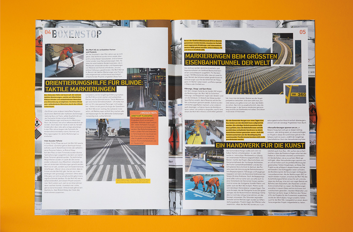 Auch wenn Ihnen der Name «Morf AG» im ersten Moment vielleicht fremd ist, sind Sie bestimmt schon einmal – wenn auch unbewusst – mit dem Unternehmen aus Oberglatt in Berührung kommen. Die Strassenmarkierungs-Profis haben in ihrer 50-jährigen Firmengeschichte schon zahlreiche Zebrastreifen, Sicherheitslinien oder taktile Markierungen auf den Asphalt gebracht, die Tag für Tag für unsere Sicherheit sorgen, sei es als Autofahrer oder Fussgänger.