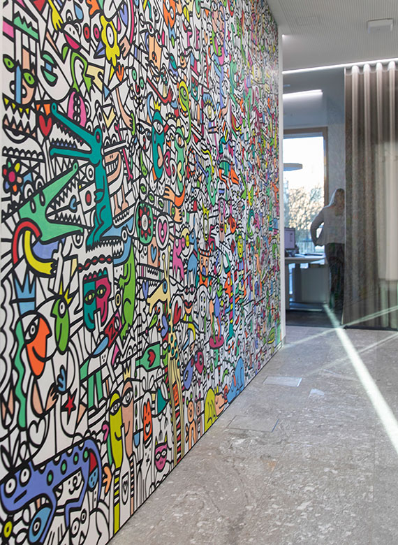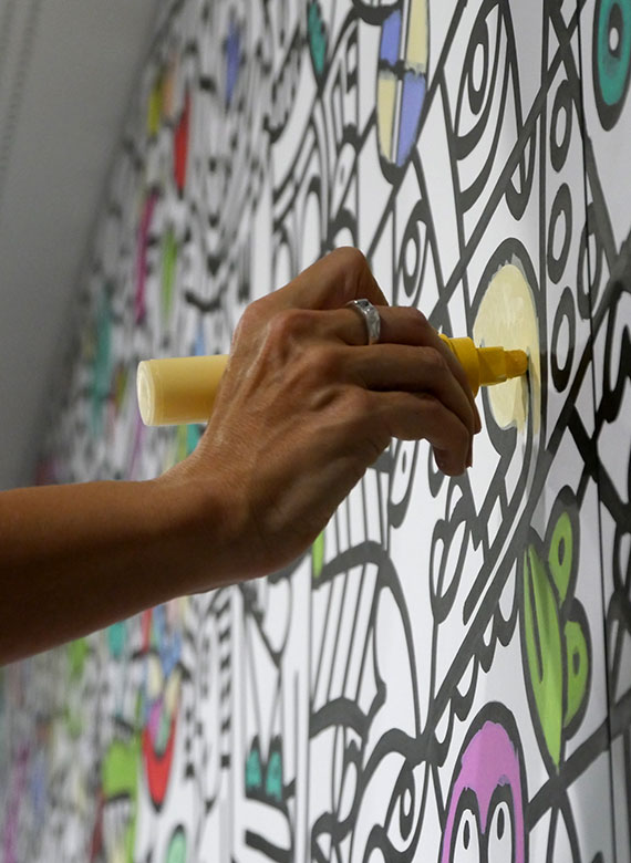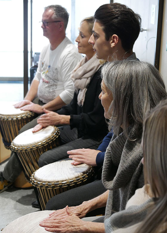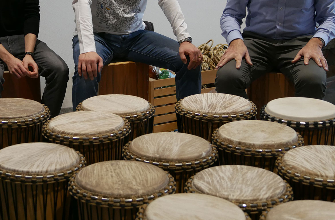 Ein gutes Jahr später waren die Mitarbeitenden an der Reihe. Der Zürcher Künstler «Fredinko» bereitete im Beratungsbereich des neuen Bankgebäudes ein Wimmelbild vor, das vom Team im Rahmen eines Mitarbeiteranlasses farbig ausgestaltet wurde. Und wer nicht gerade den Neubau verschönerte, konnte in einem Perkussionskurs unter der Leitung von Samuel Forster an seinem Rhythmusgefühl arbeiten.