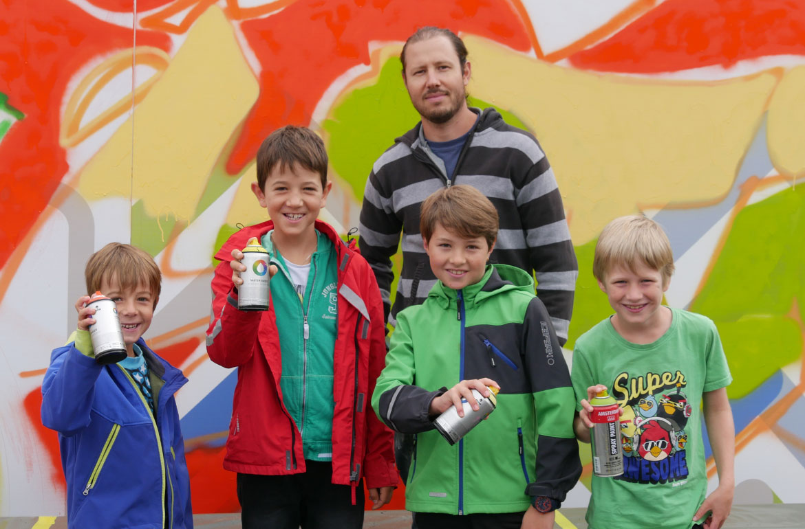 So durften im Sommer 2017 Interessierte den Rohbau erstmals in Augenschein nehmen. Kinder durften mit Unterstützung des Graffiti-Künstlers «Kesh» einen Teil des Bauzauns gestalten.