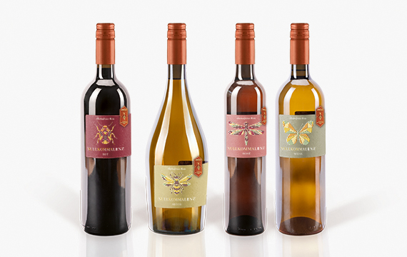 Das Weingut auf dem Iselisberg ist führend in der Herstellung von Weinen, die auf Biodiversität achten. In den Rebbergen des Betriebes sind viele verschiedene Pflanzen und Tiere heimisch. Diese einzigartige Geschichte haben wir bei der Kreation des Corporate Designs und der Etiketten von Lenz zu erzählen versucht. Vom Buchstaben E im Logo verteilen sich kleine Partikel in die Umgebung. Das spielt auf die Verbreitung von Pflanzen und Tieren an, die durch die Anbaumethoden gefördert wird. Auf den Etiketten sind schliesslich eine vielzahl der Insekten abgebildet, die in den Rebbergen von Lenz leben.