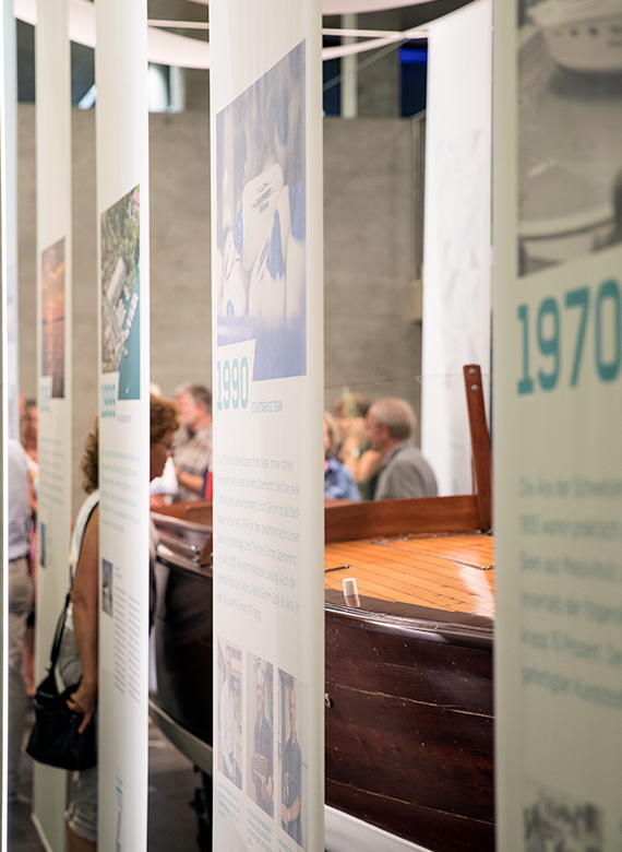 Die Geschichte der Marina Brunnert-Grimm lässt sich bis ins Jahr 1887 zurückverfolgen. Damals kaufte ein Herr namens August Bögle am heutigen Standort eine Schiffmacherhütte, heiratete Olivia Grimm und überschrieb 1917 Haus und Hof seinem Neffen Hermann Grimm I. Noch heute befindet sich die Werft in Familienbesitz – und dass das 100-jährige Bestehen eines solchen Unternehmens gebührend gefeiert werden musste, versteht sich von selbst.