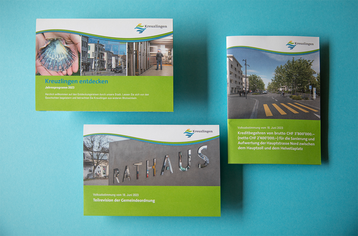 Wir sind stolz, die Stadt Kreuzlingen und ihre Mitarbeitenden als Lead-Agentur in sämtlichen Kommunikationsfragen begleiten zu dürfen. Unter anderem bereiten wir Abstimmungsbotschaften attraktiv auf, gestalten Plakate und Flyer oder visualisieren die Ereignisse des vergangenen Geschäftsjahr im Jahresbericht der Stadt.